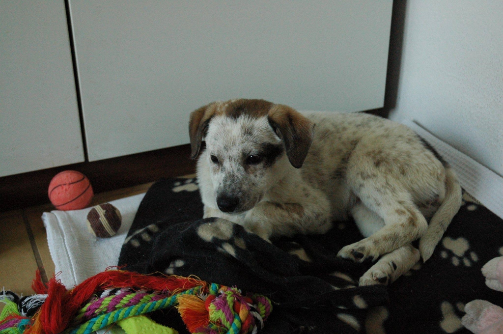 Poza jedna małą wadą (szczeka jak wychodzę) jest typowym szczeniakiem. Zakochałam się, ze cala noc przesypia z człowiekiem, głowa w głowę na podusi...Prawdopodobnie będzie średnim pieskiem koło 12 kg.