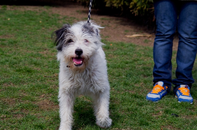 Niestety nie znamy przeszłości Fraglesa. Jedno jest pewne, nie ma za sobą łatwego życia. Prawdopodobnie był psem żyjącym na podwórku przy budzie. Był pozostawiony sam sobie. Nikt specjalnie nie przejmował się jego losem. Żył tak, jak umiał, tak jak pozwalały mu na to okoliczności. Fraglesik bardzo potrzebuje kontaktu z ludźmi. Wręcz uwielbia towarzystwo ludzi! Bardzo lubi uczyć się nowych rzeczy. Umie już chodzić na smyczy, uczy się podstawowych komend. Prezentuje cechy typowe terrierom. Jest bardzo aktywnym psem. Uwielbia skakać, kopać, gonić różne przedmioty, aportować, wyszukiwać - idealny pies dla kogoś, kto lubi uprawiać psie sporty, dla osób lubiących spędzać aktywnie czas. Fragles będzie doskonałym towarzyszem spacerów, joggingu czy nawet zabaw w ogrodzie.