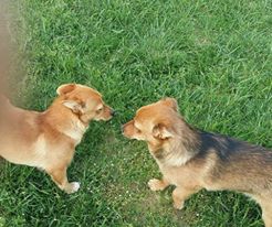 Bardzo przyjazne i wpatrzone w człowieka. Roznosi je energia, to jeszcze psie dzieci. Sunieczki są że sobą bardzo zżyte, dlatego byłoby super gdyby poszły do domku razem "w dwupaku". Uwielbiają pieszczoty i wspólne zabawy.