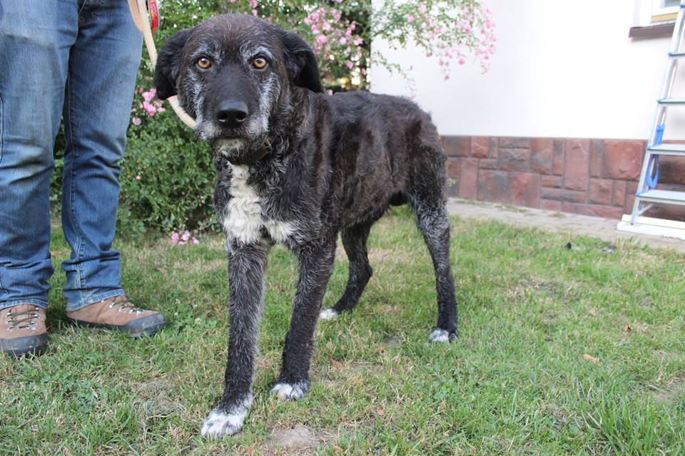 Burbon to ok. 6letni pies, który został znaleziony na obrzeżach miasta. Jest bardzo łągodny w stosunku do ludzi, jak ktos ma siłe może go smiało brać na ręce. Burbonik ma pięknie opruszony sreberkiem pyszczek, przez co wygląda na starszegoniż jest. Ma doskonałą kondycję, jest ciekawski i przyjazny. Na obcych poszczeka, ale krzywdy nie zrobi. Samą swoją posturą odsraszy intruzów. Burbon raczej nie nadaje się do domu z kotami, natomiast kurom i kurczętom nic nie robi. Przed adopcją będzie zaszczepiony, odrobaczony i wykastrowany. Prosimy o domek dla tego psiaka.Czeka na niego w Jaśle.