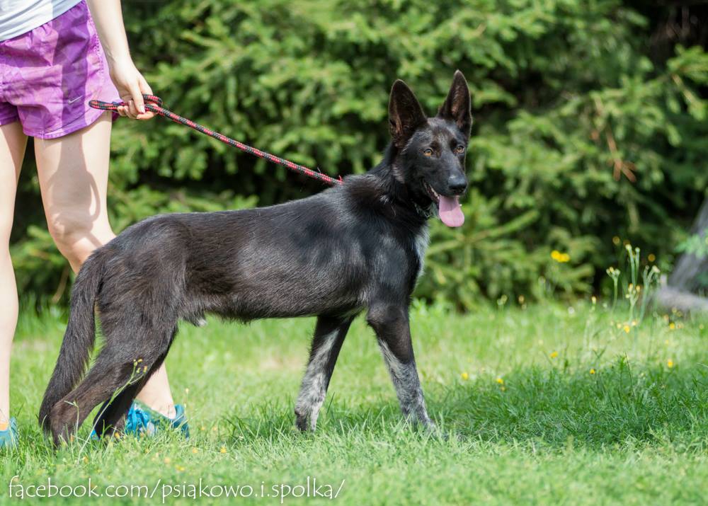 Jest wesołym, przyjaznym psiakiem. Trochę boi się smyczy i początek spaceru bardziej się czołga niż idzie, ale daje się przekonać bo chce być blisko człowieka.