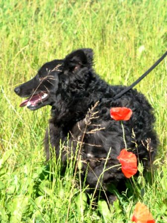 Bardzo lubi przebywać w towarzystwie człowieka, nie ma w niej cienia agresji. Ma delikatną, miłą w dotyku, falowaną dłuższą sierść.
