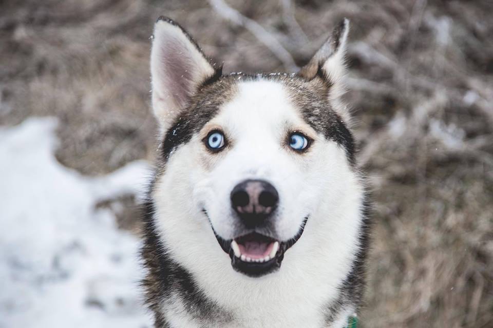 Oks, młody, przepiękny HUSKY, wesoły i uśmiechnięty