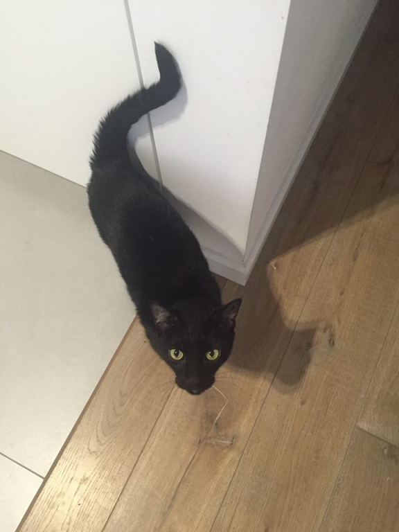 Muszka ma około 12 lat, jest bardzo towarzyską i uczuciową kotką. Uwielbia być głaskana, lubi się trochę pobawić (oczywiście na tyle na ile dojrzała kotka ma chęć :) ), uwielbia wylegiwać się na kolanach i jest trochę okrąglutka(wysterylizowana).