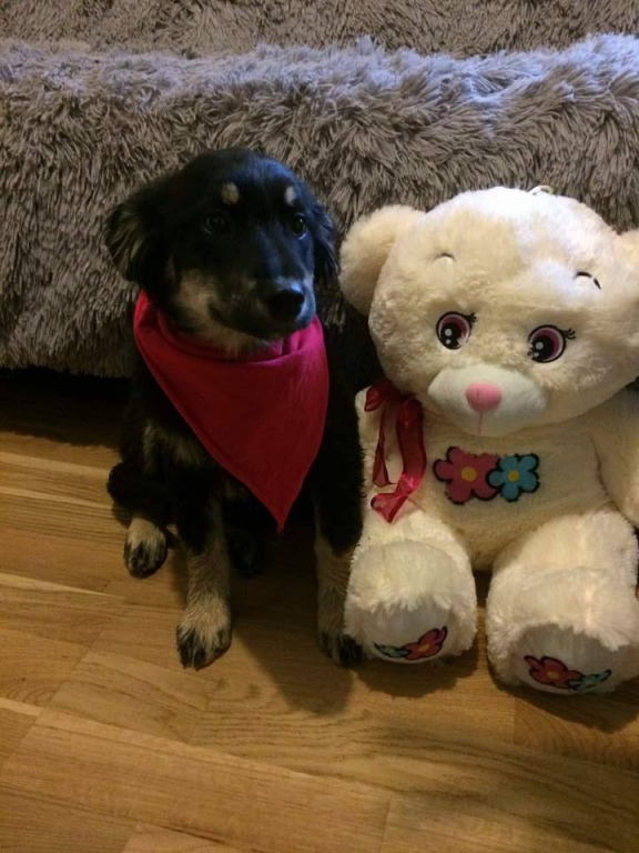 Szczeniak błąkał się po wsi razem ze swoją matką. Ewidentnie zostały wyrzucone. Były dokarmiane przez mieszkańców jednej z posesji. Niestety nikt nie zdecydował się na przygarnięcie psiaków.