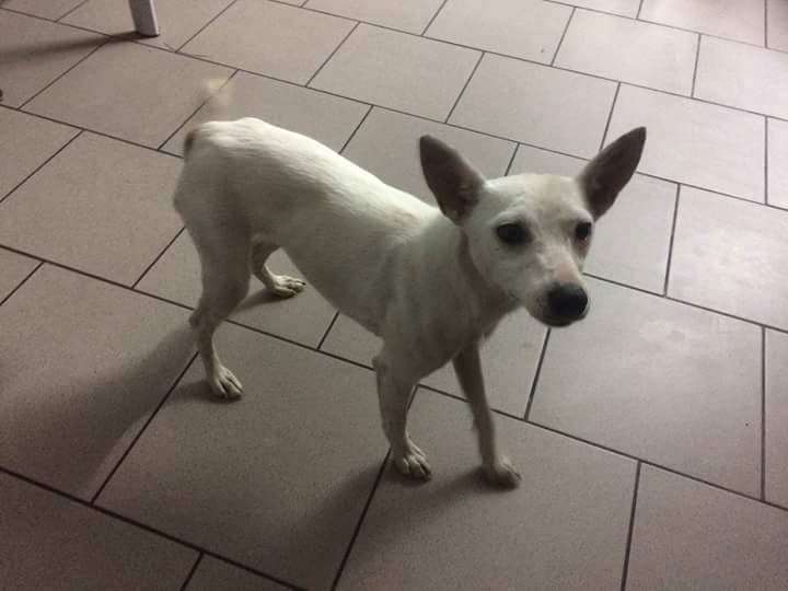 Śnieżnobiałą półroczną MASZĘ znalazłyśmy po prostu na drodzę, po której akurat przejeżdżała jedna z naszych wolontariuszek. Biegała za samochodami co raz bardziej zdezorijentowana i przerażona. Najwyraźniej kochające serduszko szukało tych drani, dla których właśnie zaczął sie sezon urlopowy.