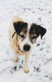 Romeo to nasz schroniskowy staruszek (sporo w naszym schronisku psich staruszków). Romeo ma ponad 10 lat. Potrafi chodzić na smyczy choć nie przepada za tym. Puszczony luzem pilnuje się wręcz wzorowo. Toleruje suczki i generlanie większość samców. Romeo nie lubi kiedy ktoś "majstruje" przy jego obroży, nie lubi czesania i wszelkich zabiegów pielęgnacyjnych - wówczas daje wyraz swojej niechęci poprzez powarkiwanie. Mimo tego to cudowny psiak, uwielbia spać na fotelu lub innych miękkich poduchach. Romeo będzie idealnym psem domowym ale potrzebuje odpowiedzialnych ludzi, którzy podejmą się pracy z psem. Nie polecamy Romea do domu z dziećmi. Nie pozwólmy mu spędzić reszty jego życia za schroniskowymi kratami w zimnym boksie.