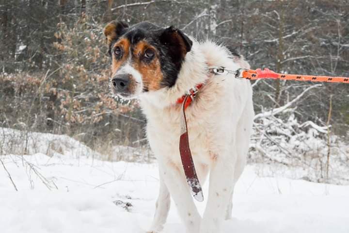 Jest z całą pewnością psem wycofanym, po ogromnych przejściach, ale bez cienia agresji, pozwala się głaskać i zaczyna mu się to nawet podobać. W początkowym okresie pobytu w schronisku nie chodził nawet na spacery, teraz chodzi i ze smyczą dobrze sobie radzi.