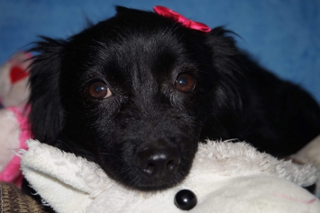 DAISY została znaleziona na opuszczonej posesji razem ze starszą sunią i piątką szczeniaków. Mała sunia tak skutecznie chowała się wśród rupieci, że zauważyliśmy ją tylko wtedy, gdy sama wyszła z ukrycia na widok odjeżdżającej rodziny.