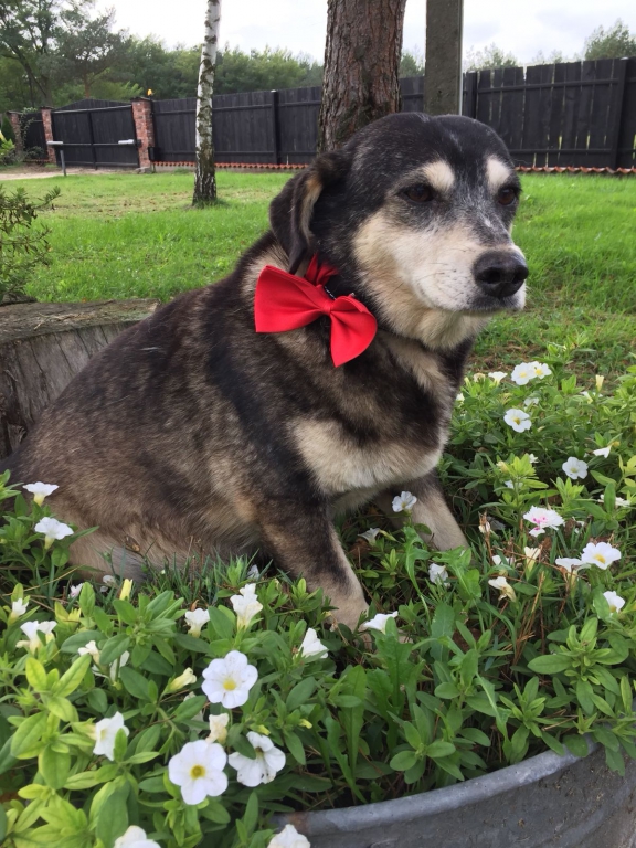 Róża ma około 10at. Jest sunią uległą i łagodną, troszkę wystraszona w stosunku do obcych. Ktoś wyrzucił ja w lesie. Jest wysterylizowana, zaszczepiona, zaczipowana, odrobaczona, odpchlona i gotowa do adopcji. Kocha dzieci i zabawę z innymi psami.