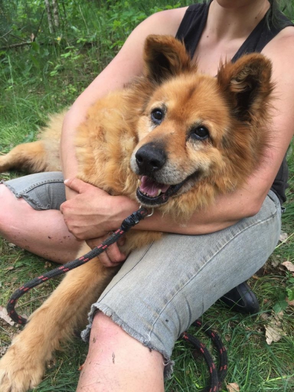 Już się chyba pogodził z faktem, że spacer raz tygodniu musi mu wystarczyć. Na smyczy chodzi idealnie, ale największą przyjemnością jest ludzki dotyk. Ręka , która głaszcze, czesze zaniedbane od lat futerko- oto pełnia szczęścia.